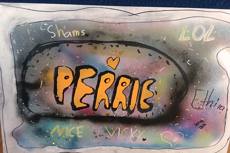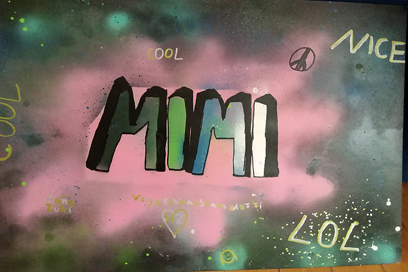 Wir haben die Schrift in 3D geübt und entwickelt, was wir später für Motive sprayen.
