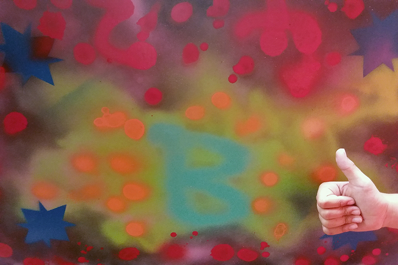 Dann konnten wir beginnen und unser Bild mit Acrylspray zu gestalten.