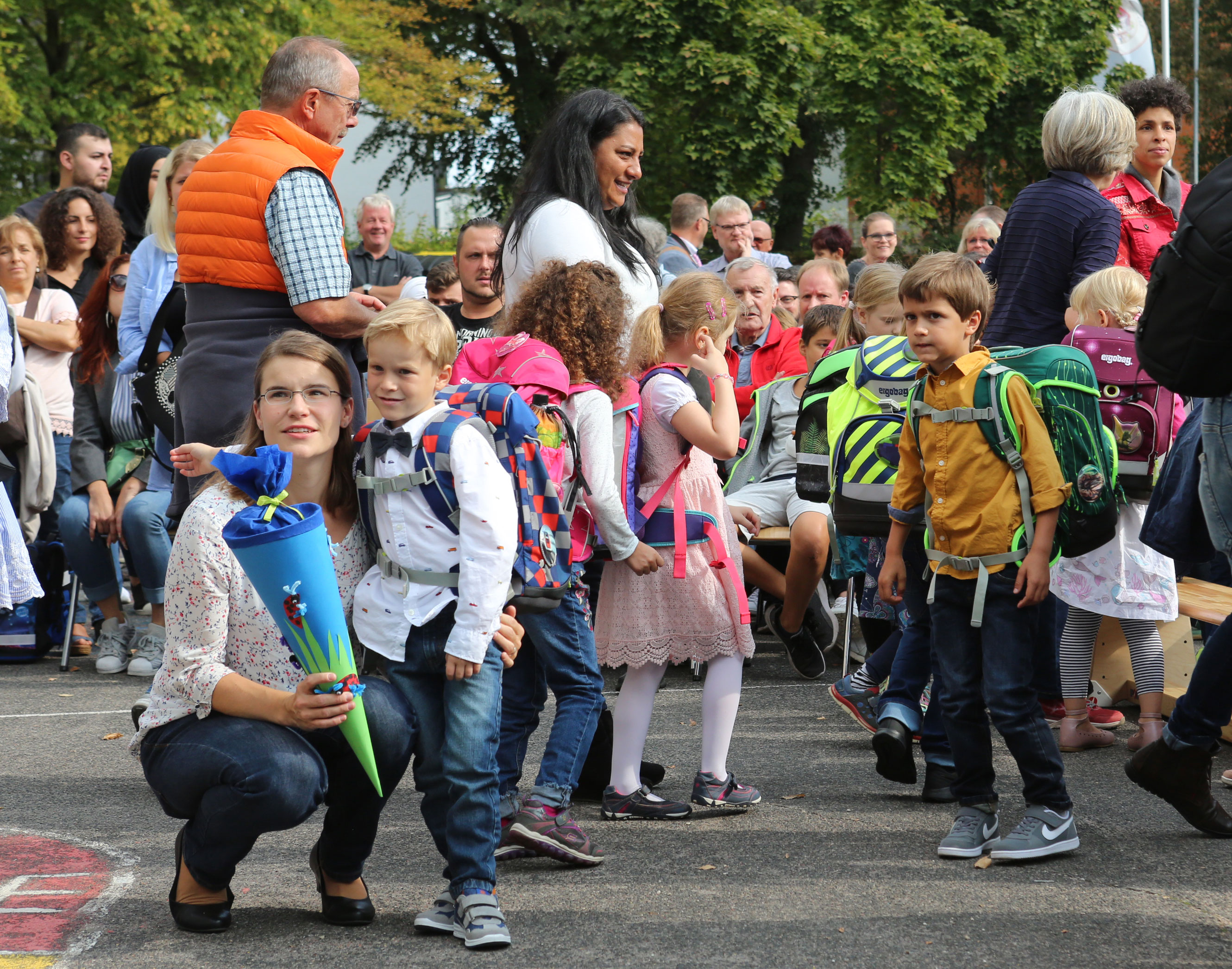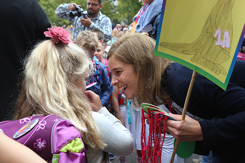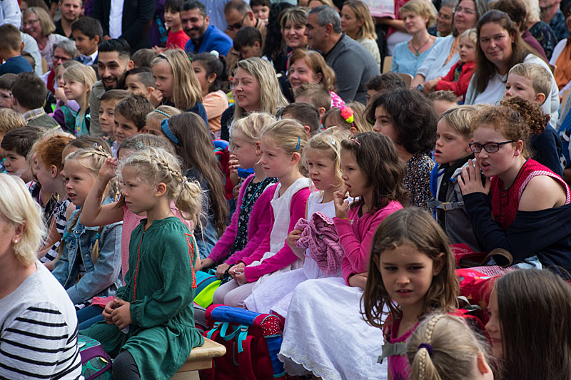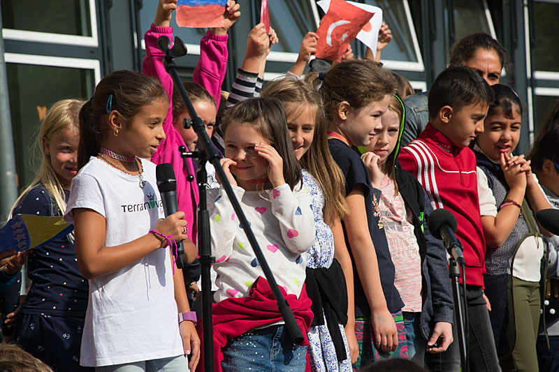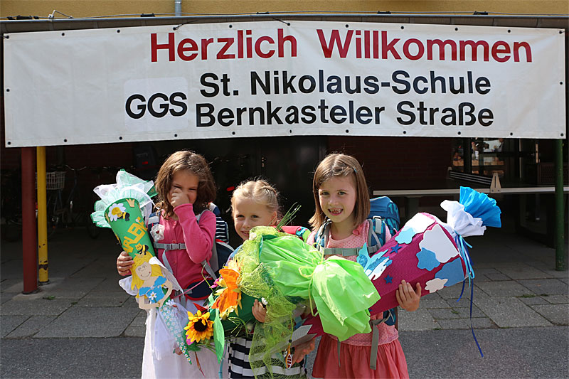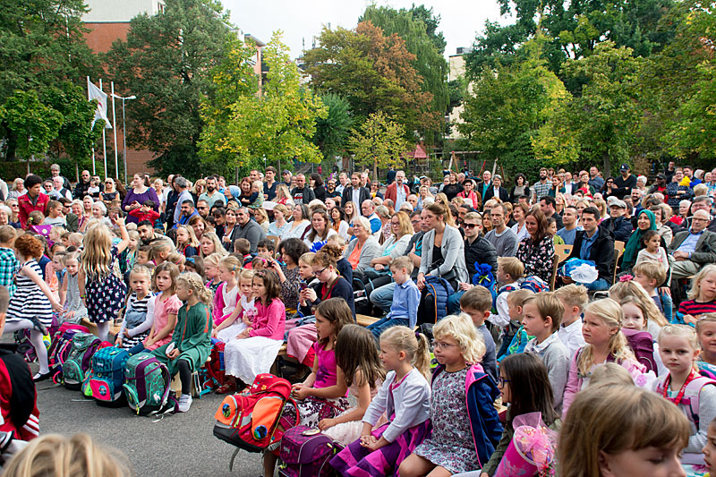 Am Tag der Einschulung begrüßte die Sankt Nikolaus Schule ihre neuen Erstklässler ganz herzlich. Bei schönstem Sonnenschein wurden die stolzen Schulkinder mit Musik und auf vielen verschiedenen Sprachen von ihren älteren Mitschülern, ihren neuen Lehrern und der Schulleitung empfangen. Einfach Klasse, dass ihr da seid, liebe Erstklässler! (Fotos: J. Sturmberg und M. Sprenz)