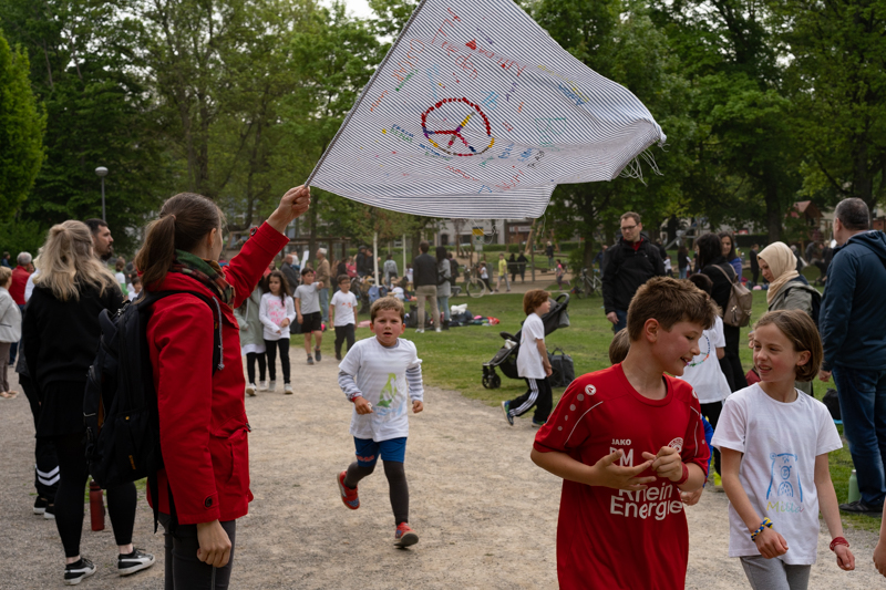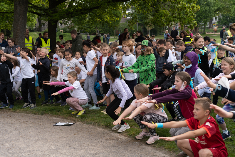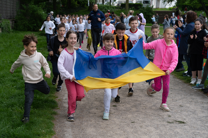 Nachdem der diesjährige Sponsorenlauf wetterbedingt in den Mai verschoben werden musste, hatten wir jetzt mehr Glück: strahlender Sonnenschein und moderate Temperaturen lieferte beste Bedingungen zum Laufen. Außerdem mobilisierte das Engagement für die Ukrainehilfe, viel Freude an der Bewegung und gegenseitiger Ansporn, ungeahnte Kräfte bei den Kindern unserer Schule. Rund zwei Stunden hatten sie Zeit, so viele Runden im Rosenzweigpark zu laufen wie möglich. Dabei konnten zwischendurch natürlich immer wieder Pausen eingelegt werden und auch im Gehen konnten die Kinder “Kilometer reißen”, wenn die Kräfte einmal nicht mehr fürs Joggen reichten. So waren am Ende fast alle Arme schwer mit den gesammelten Gummibändern behängt, die jedes Kind für eine gelaufene Runde erhielt. Nun gilt es, die zuvor gesammelten Sponsoren an ihre Spende zu erinnern und die Gelder „einzutreiben“.