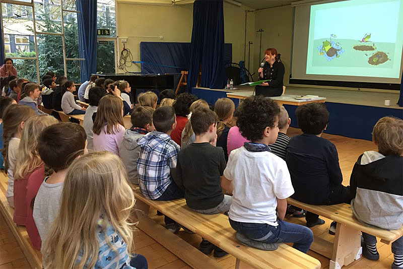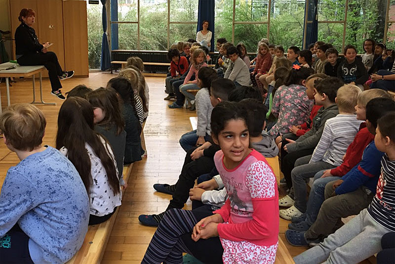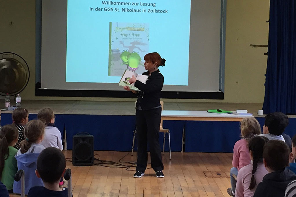 Am 12.4.2018 besuchte die Kölner Kinderbuchautorin Gerlis Zillgens unsere Schule und las aus ihrem aktuellen Buch vor. Die Kinder folgten gebannt, wie die beiden Frösche Hipp & Hopp ihren Papa, den Froschkönig, retten. Nähere Informationen zur Lesung, zur Autorin und zum Verein “miteinander – füreinander”, finden sie hier. (Fotos: Hanna Hermanns)