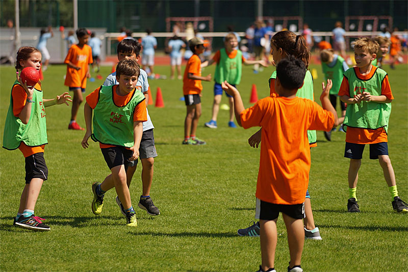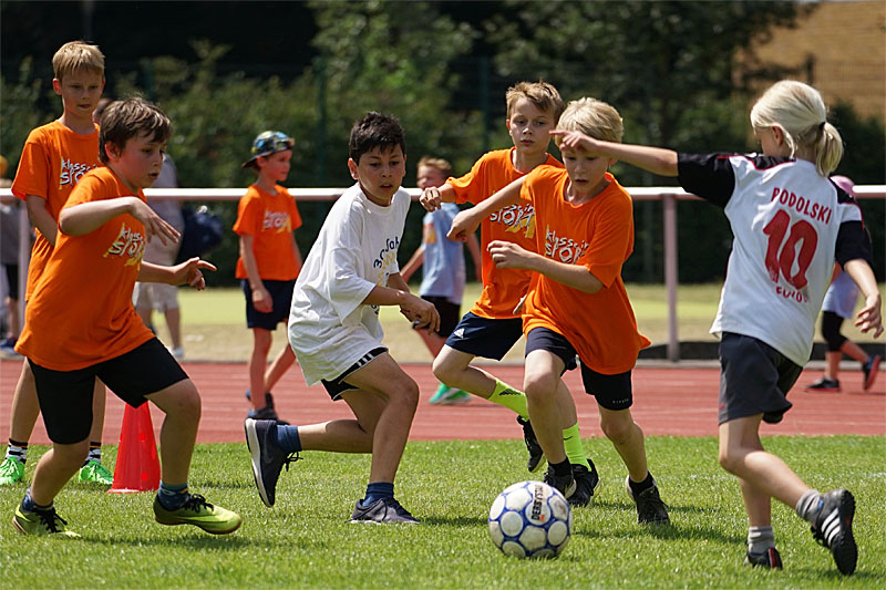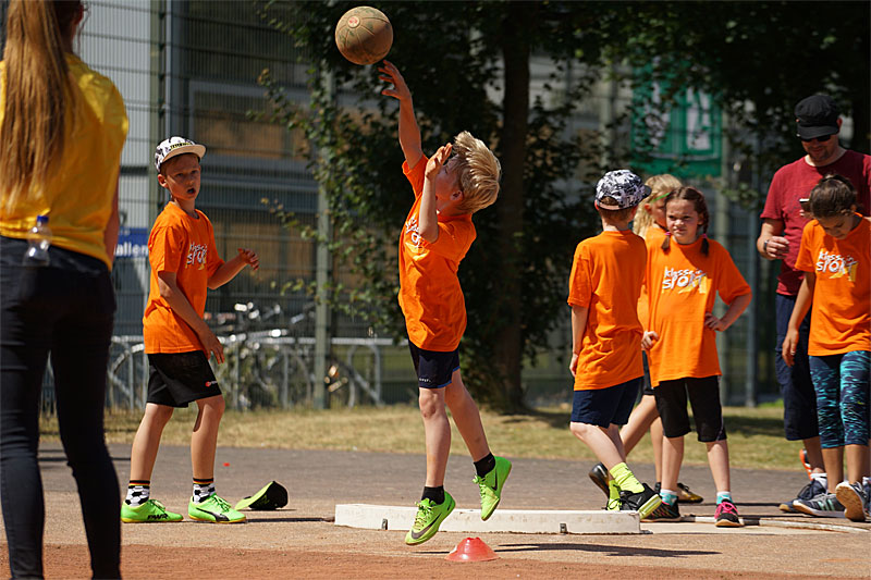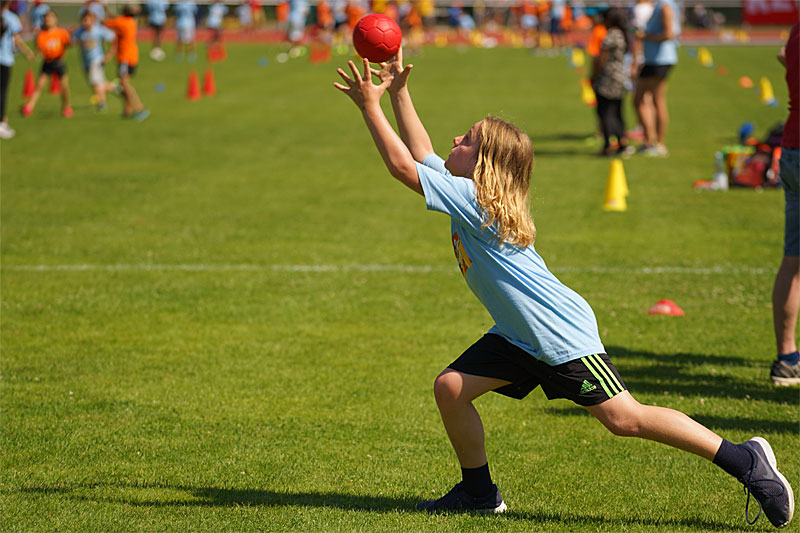 Am vergangenen Samstag (30.06.2018) nahmen 18 Schülerinnen und Schüler der 2. und 4. Klassen bei “Klasse in Sport” teil, dem jährlichen Fest des Vereins für täglichen Schulsport. Hier zeigten die sportlichen Kids Ausdauer in Vielseitigkeitsspielen, wie dem Zielschießen oder Zielwerfen. Außerdem gelang es ihnen, mit Taktik und Fairness bei Mannschaftsspielen gegen einige Klassen anderer Schulen zu gewinnen. Bei schönstem Sonnenschein zeigten die Schülerinnen und Schüler der Sankt Nikolaus Schule eine tolle Teamleistung. (Fotos: Waleri Schmidt)