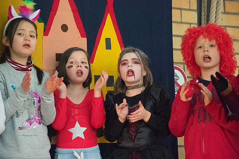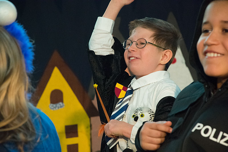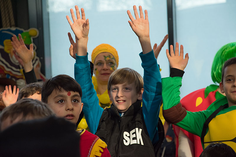 Mit einem durch die Schüler gestalteten Bühnenprogramm feierte unsere Schule an Weiberfastnacht eine wilde Karnevalsparty. Die Klassen präsentierten ein buntes Bühnenprogramm mit Gesang, Tanz und Theater. Auch der neue Schul-Chor stand auf der Bühne und heizte dem Publikum mit Mathenachhilfe ein (…dreimol Null es Null es Null)!